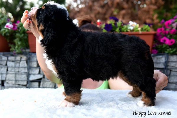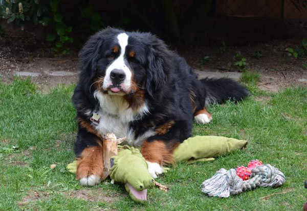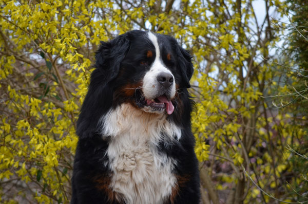 Nach dieser schönen Welpenzeit holten mich meine neuen Besitzer, Ulli und Jürgen Holland nach Dietenhofen, in Deutschland. Hier wuchs ich schnell zu einem stattlichen Bernerjungen heran. Einen großen Bernerfreund, mit dem Namen Blues, habe ich da auch. Wir vertragen uns sehr gut und sind ein Herz und eine Seele.